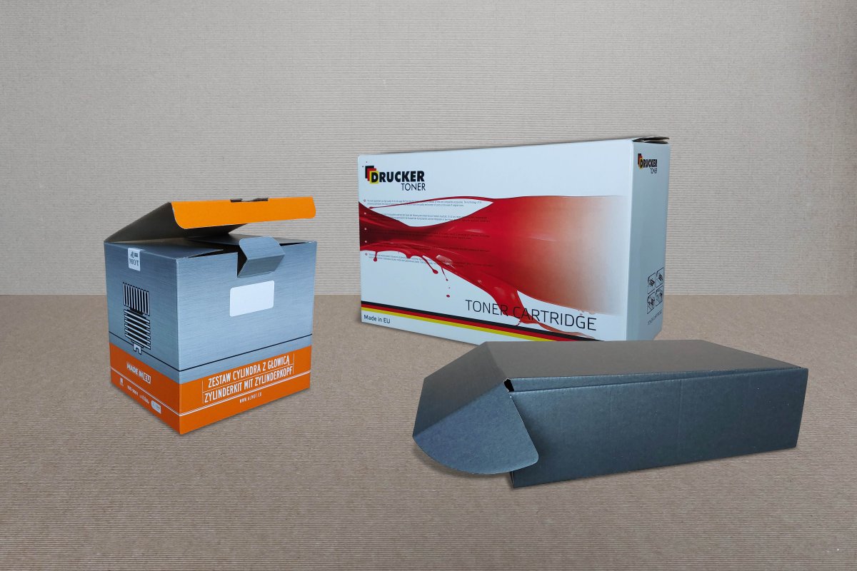 Wykonujemy pudełka z kartonu, tektury litej i falistej, kaszerowanej (jedno- i dwustronnie), z nadrukiem fleksograficznym bezpośrednio na tekturze.